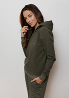 Wysokiej jakości damska bluza z kapturem wykonana w 95% ze szczotkowanej bawełny organicznej i 5% elastanu. Materiał jest wyjątkowo miękki, oddychający i bardzo przyjemny w dotyku. Zamiast oryginalnej gumki bluza ma ściągacz, który zwiększa komfort i elastyczność. Krój jest taki sam jak w bluzach Regular, które są już popularne wśród klientów – luźny i przemyślany dla maksymalnego komfortu przez cały rok. Bluza jest idealną bazą do codziennych i swobodnych stylizacji.