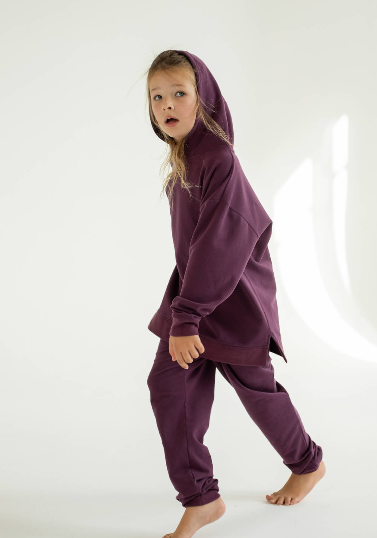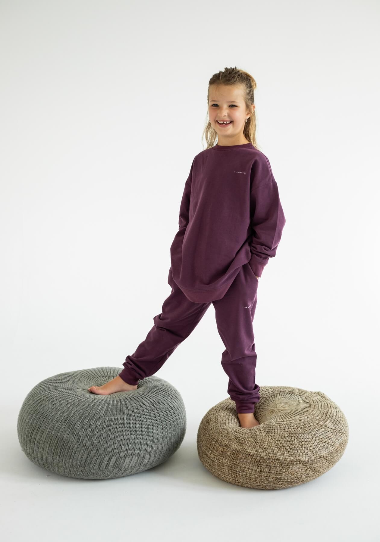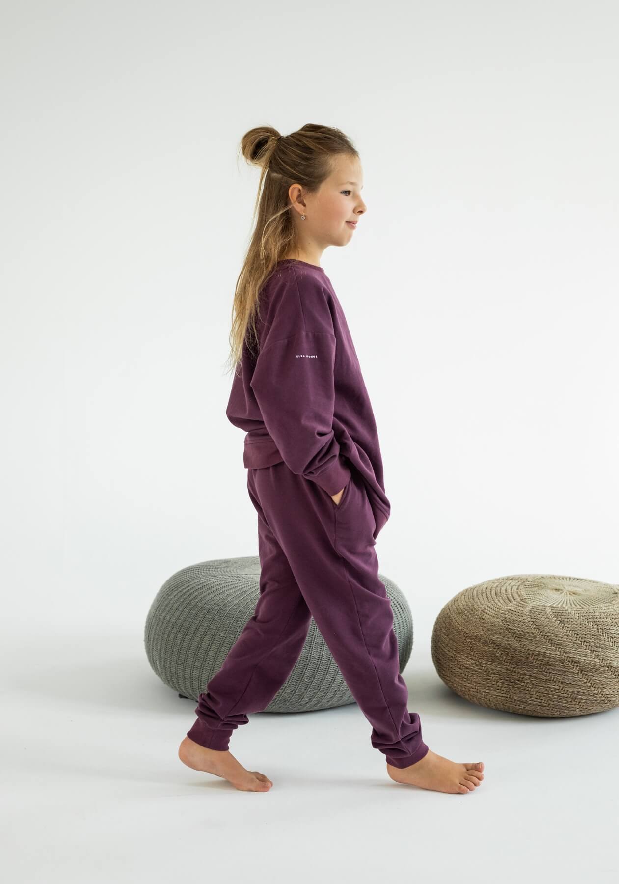 Dětské teplákové kalhoty z biobavlny Purple - Oversized