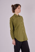 Stylová dámská košile s klasickým límečkem, vyrobená z mimořádně jemného flanelu. Loose fit střih zajišťuje pohodlí a volnost pohybu, zároveň ale zachovává elegantní vzhled. Ideální kousek pro celý rok – v létě jako lehká vrstva, v zimě jako pohodlný základ outfitu.
