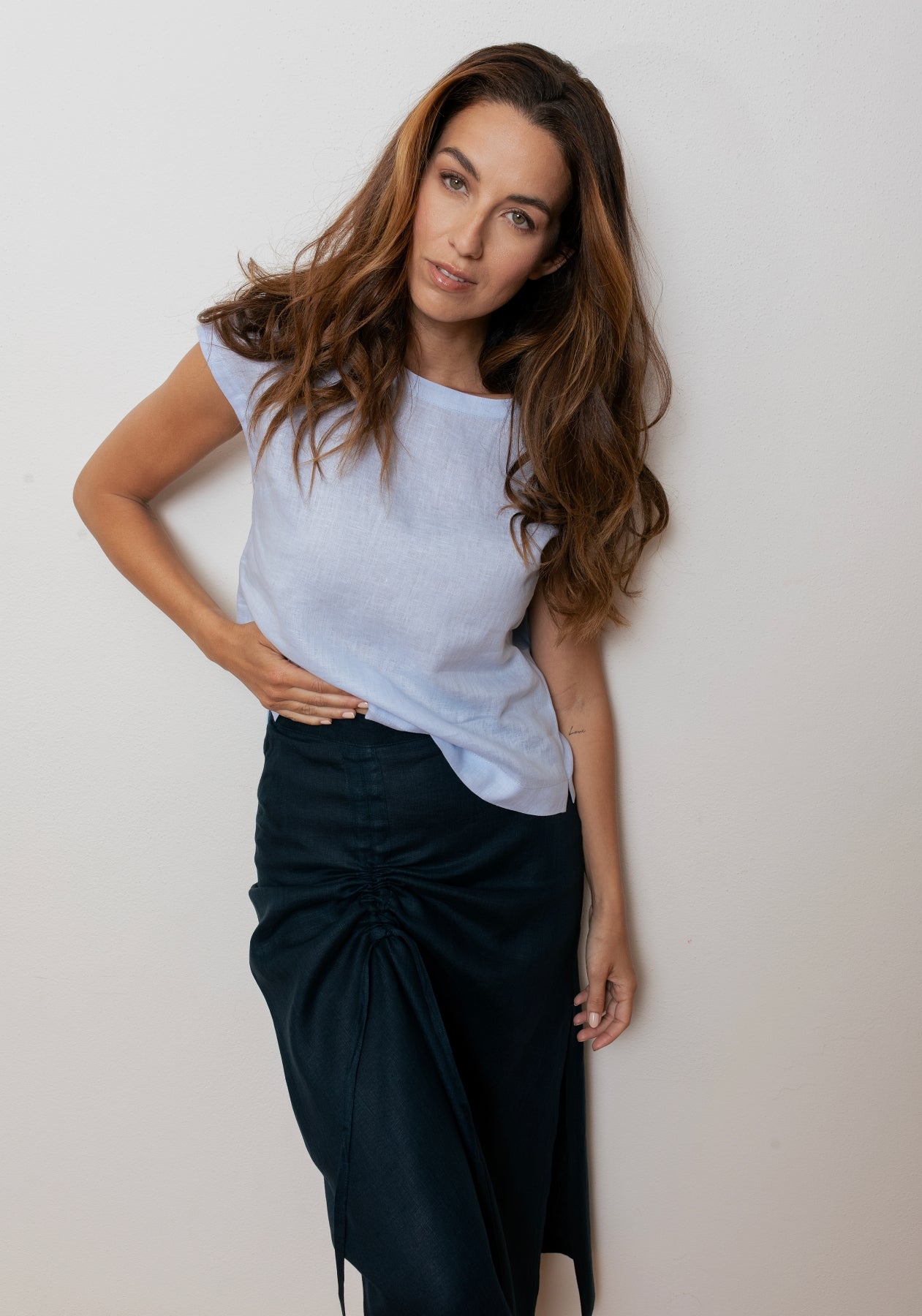 Sukně z přírodních, vzdušných materiálů v neutrálních barvách jsou ideálním kouskem pro každý den. Jsou pohodlné, lehké a díky jednoduchému střihu se skvěle kombinují s jakýmkoli topem z naší kolekce – od trička až po elegantní zavinovací top nebo kimono. Vytvoříte tak outfit, který je ženský, nadčasový a příjemný na nošení po celý rok.