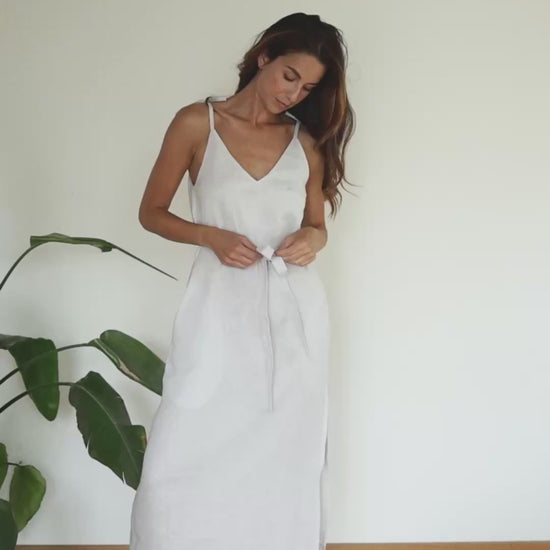 Dámské lněné šaty long loose fit Pearl gray - s páskem