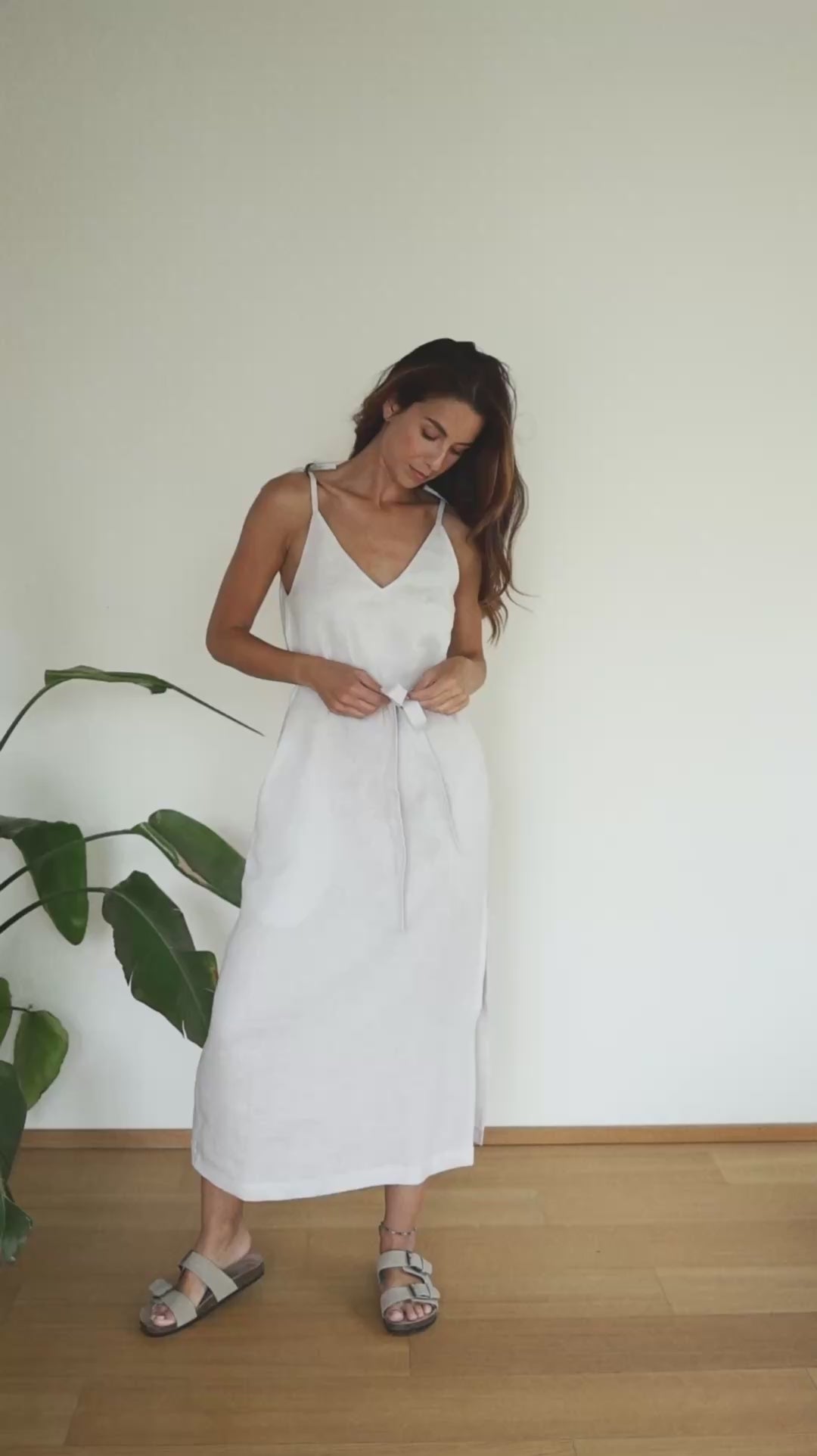 Tyto dámské lněné šaty se zavazovacím páskem, nastavitelnými ramínky, kapsami a bočním rozparkem jsou navržené pro maximální pohodlí a volnost pohybu. Střih je volnější (loose fit), ale díky variabilnímu pásku lze šaty přizpůsobit postavě – pásek lze uvázat vpředu, vzadu nebo na boku. Šaty tak získávají elegantnější siluetu, aniž by ztrácely na lehkosti.