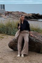 Dámské lněné kalhoty wide - Beige Natural (Velikost)