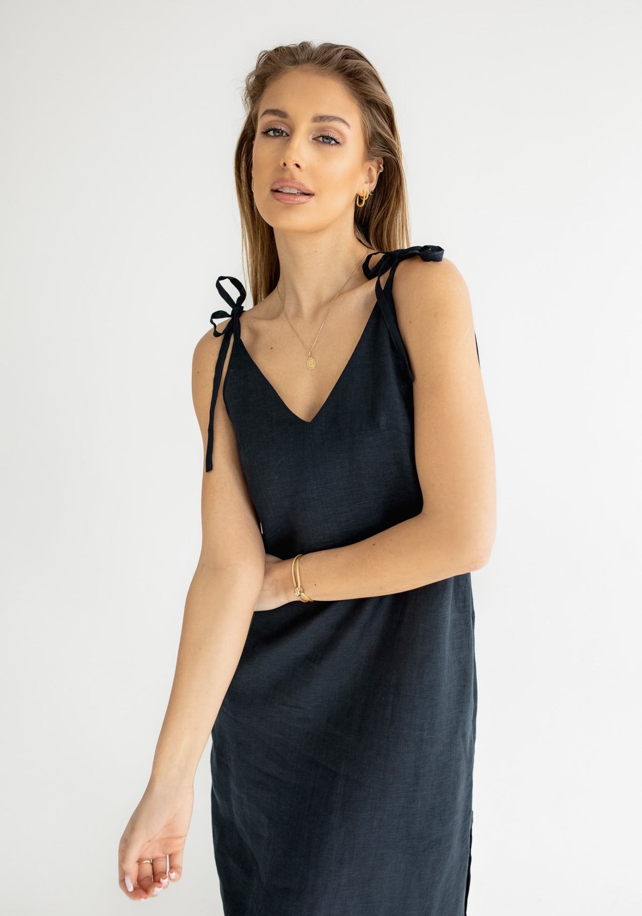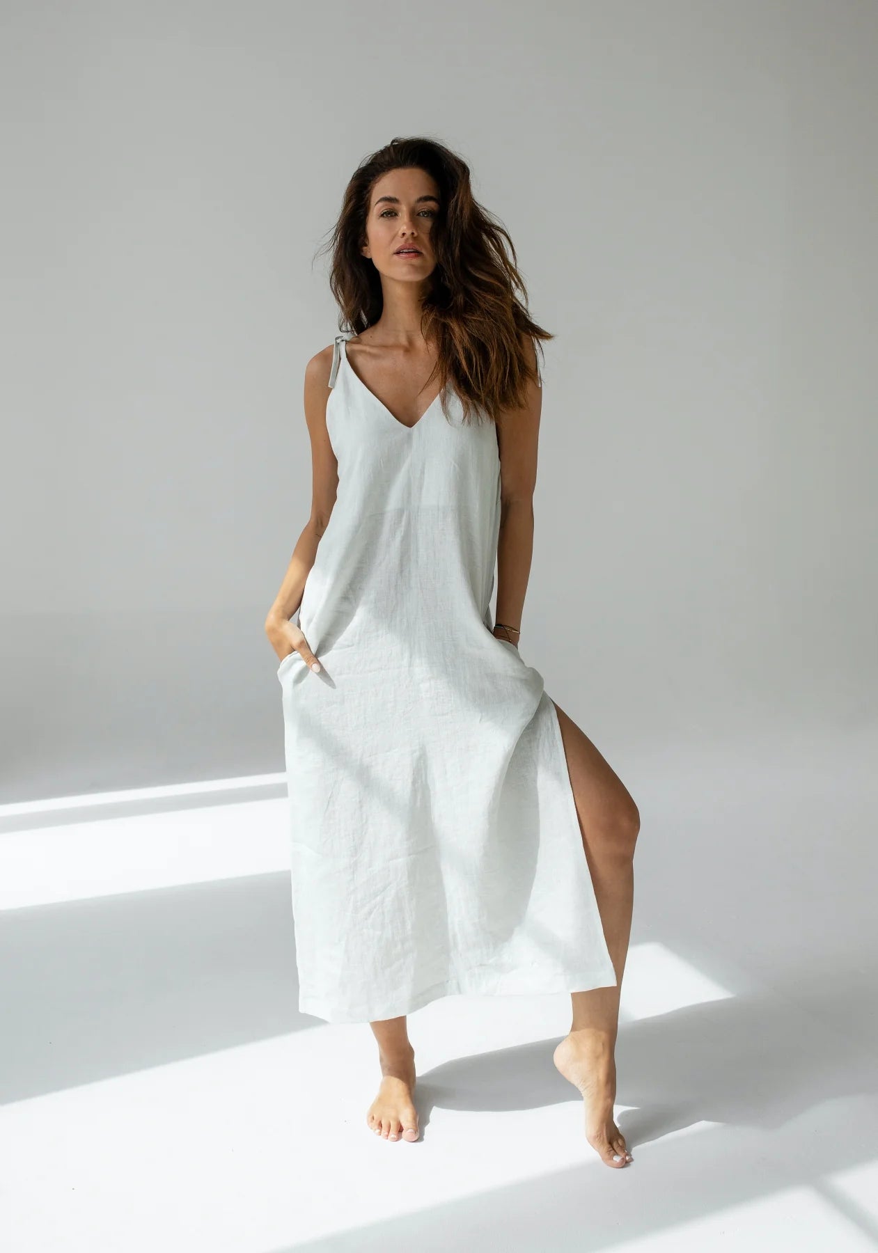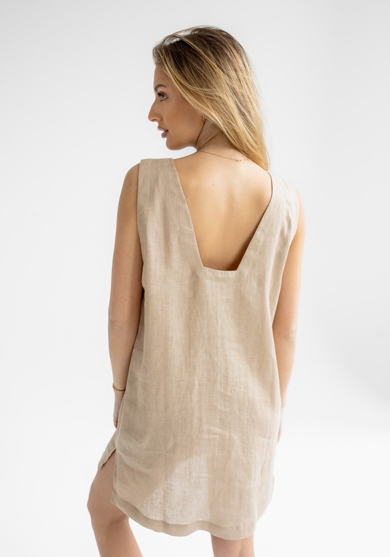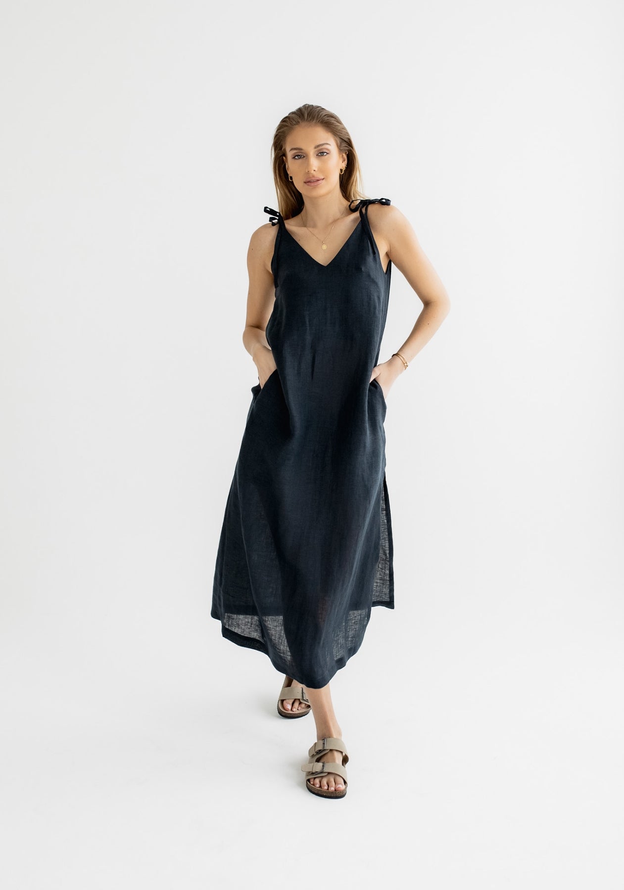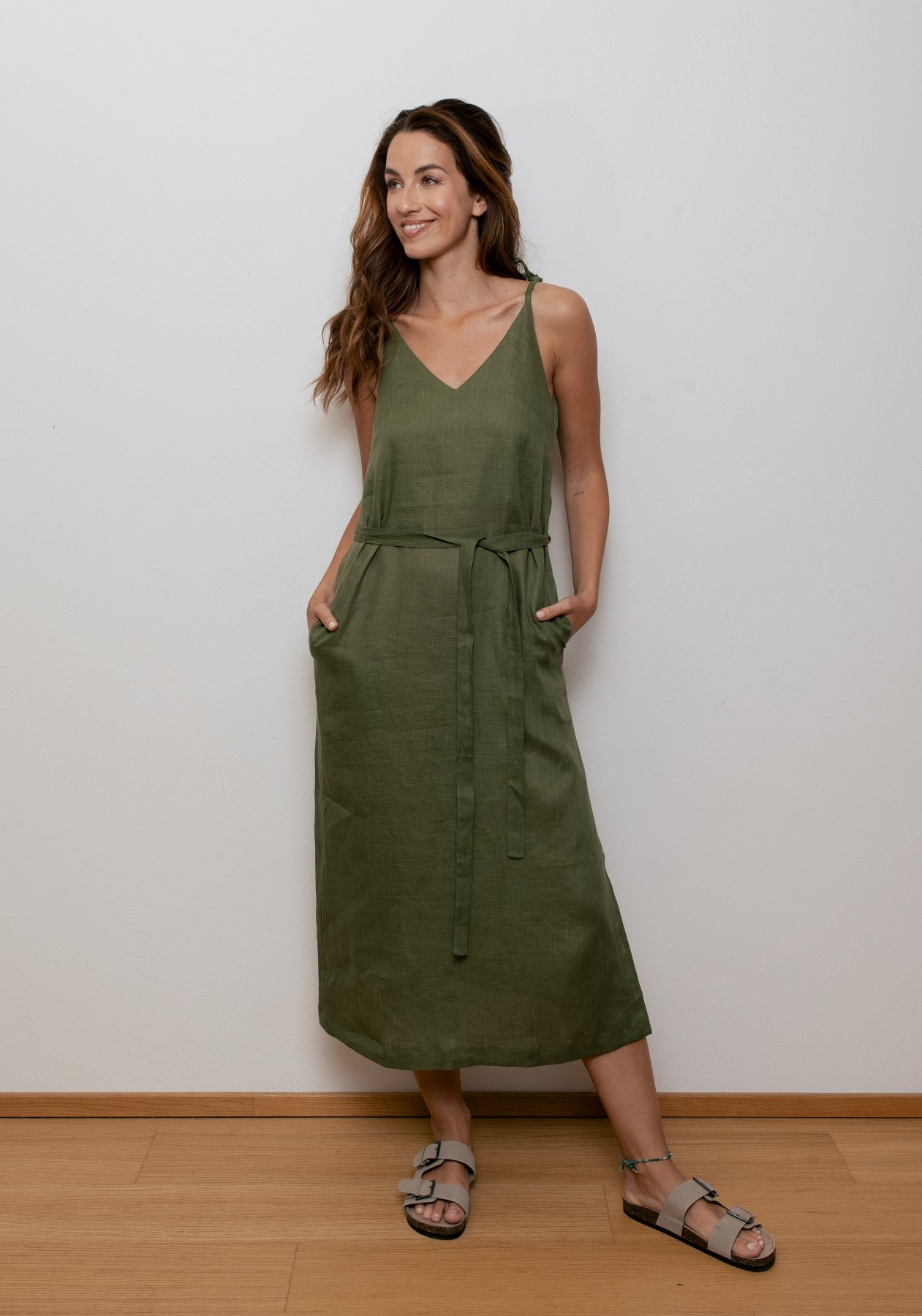 Long linen dresses are playful and their straps can be tied on the shoulders or easily on the back, so they fit all sizes. Women's linen dresses are sewn precisely from natural material in the Czech Republic.