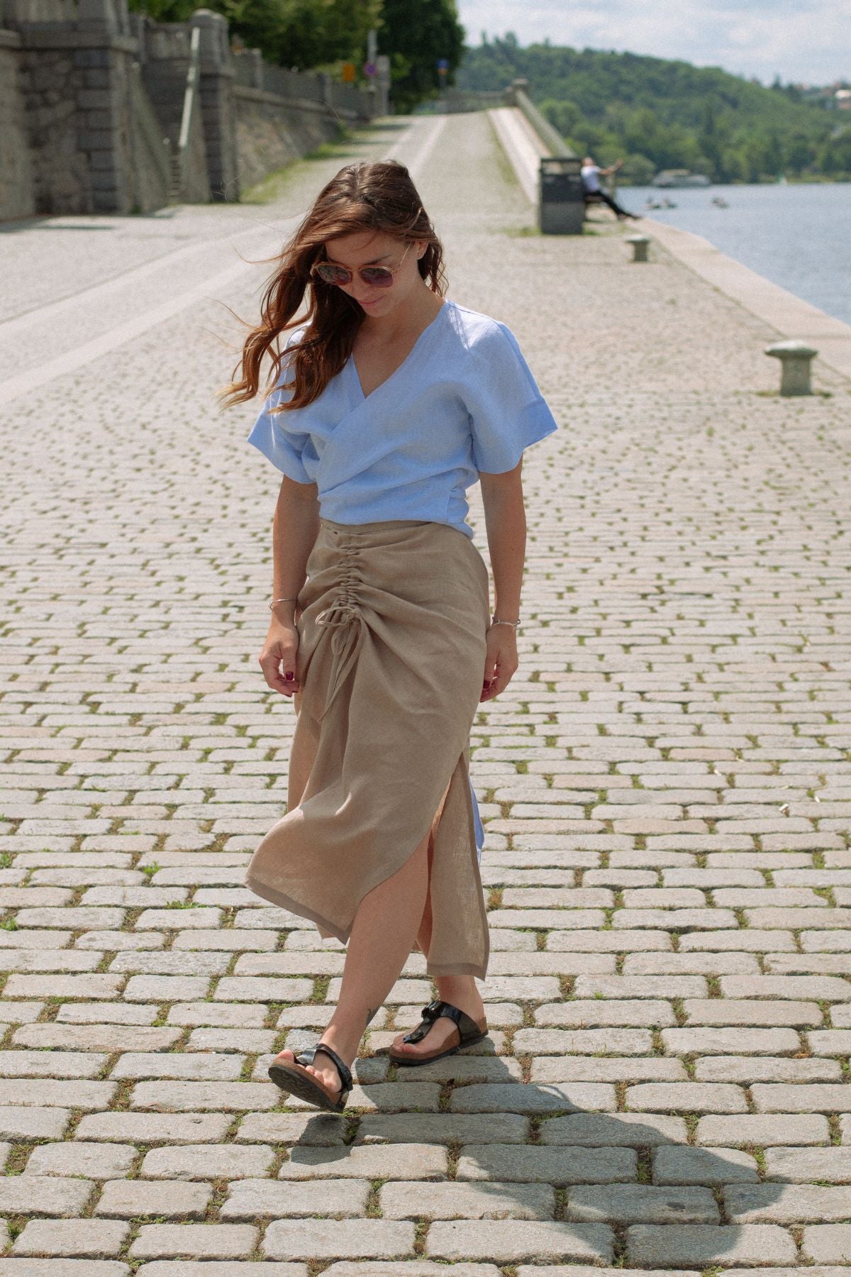 Outfit by Danča | Beige Natural skirt & Wrap top