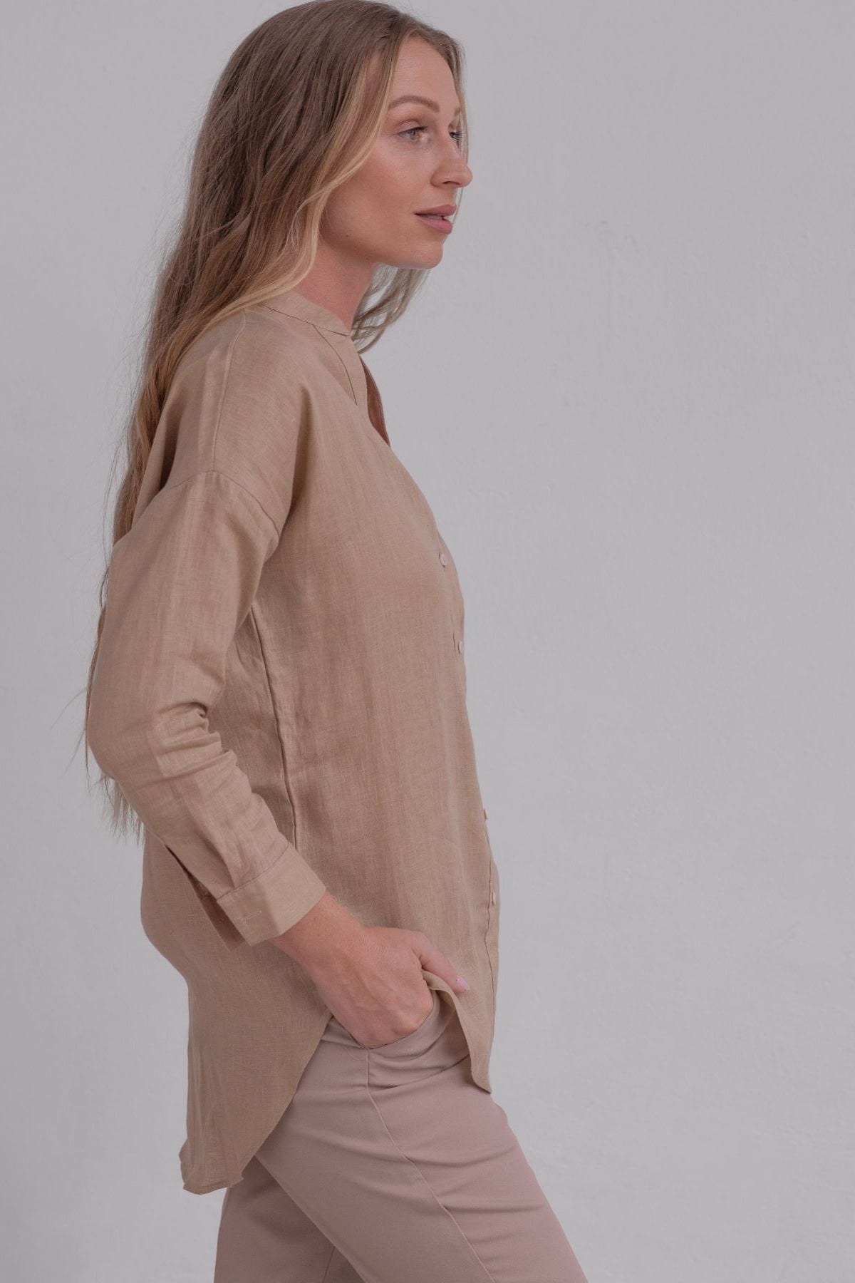 Dámske ľanové košele zo 100% kvalitného ľanu sú nadčasovým základom šatníka, ktorý sa hodí na každý deň aj výnimočné príležitosti. Priedušný a ľahký materiál zaručí pohodlie v lete, no vrstvením ich využijete aj počas chladnejších dní. Neutrálne farby sa skvele kombinujú s ďalšími kúskami z kolekcie, vďaka čomu jednoducho vytvoríte ležérny aj elegantný outfit. Prémiový ľan je šetrný k pokožke, jemný na dotyk a vydrží roky.