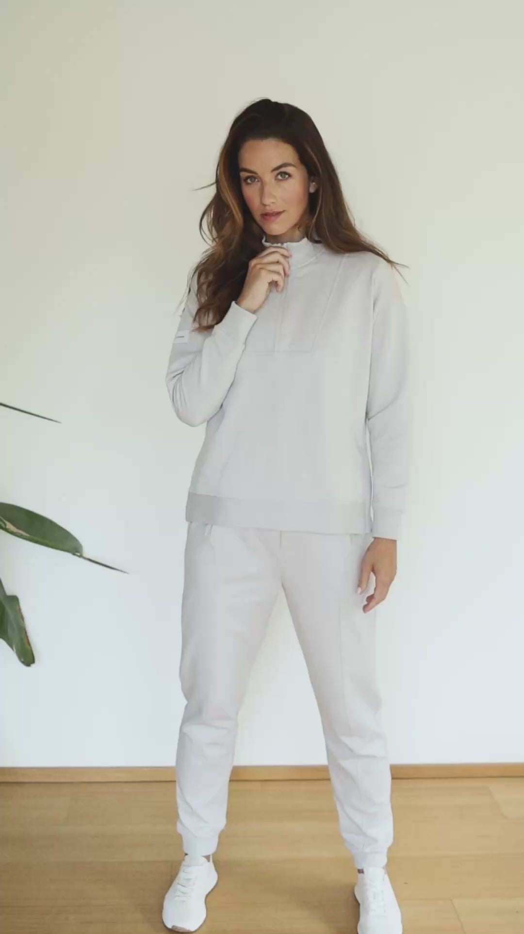 Vysoko kvalitná dámska mikina s rolákom na zips a bočnými rozparkami vyrobená z 95 % nečesanej biobavlny a 5 % elastanu. Vďaka tomuto zloženiu je mimoriadne jemná, priedušná a príjemná na dotyk. Precízne spracovaný strih so skráteným predným dielom opticky predlžuje postavu a zabezpečuje pohodlie počas celého dňa – doma, v práci aj pri spoločenských príležitostiach.