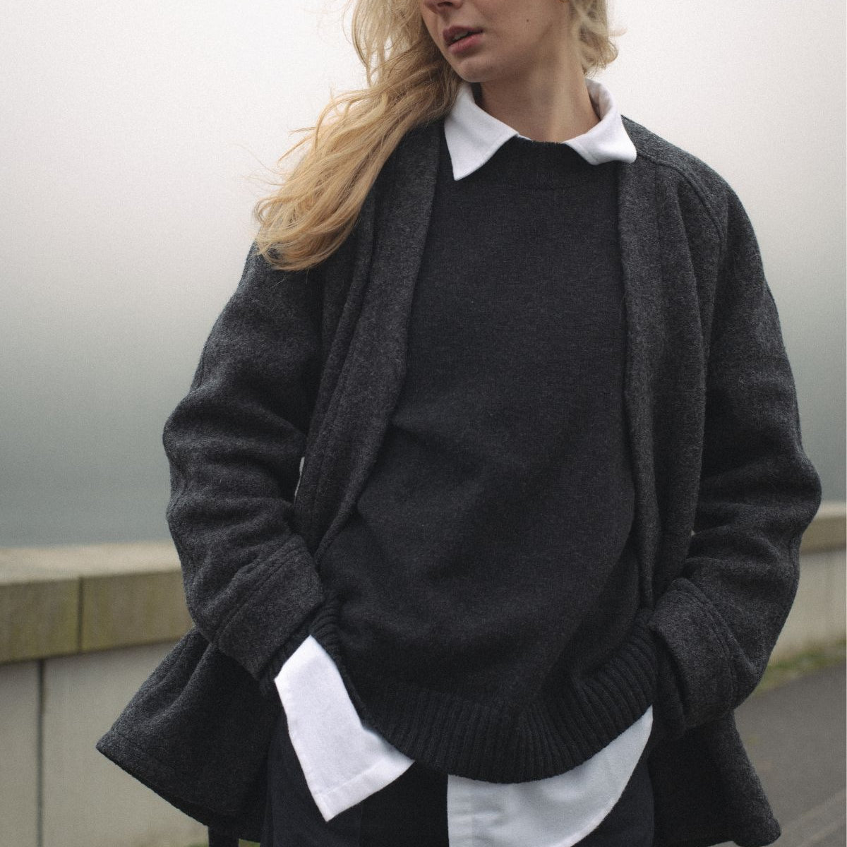 Loose fit strih spája pohodlie s elegantnou siluetou a neutrálna tmavosivá farba zabezpečuje univerzálnosť a jednoduché kombinovanie so zvyškom šatníka – od elegantného až po uvoľnenejší štýl s džínsami a teniskami.